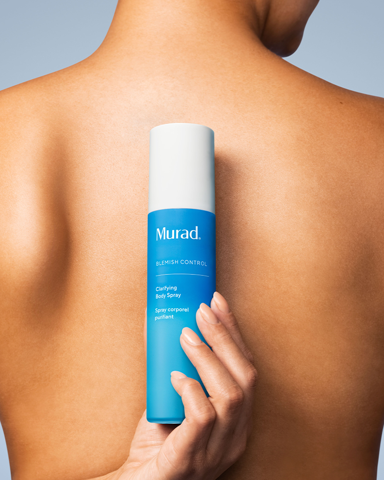 Daily, on-the-go breakout body spray clears and prevents body breakouts on the shoulders, back and beyond.