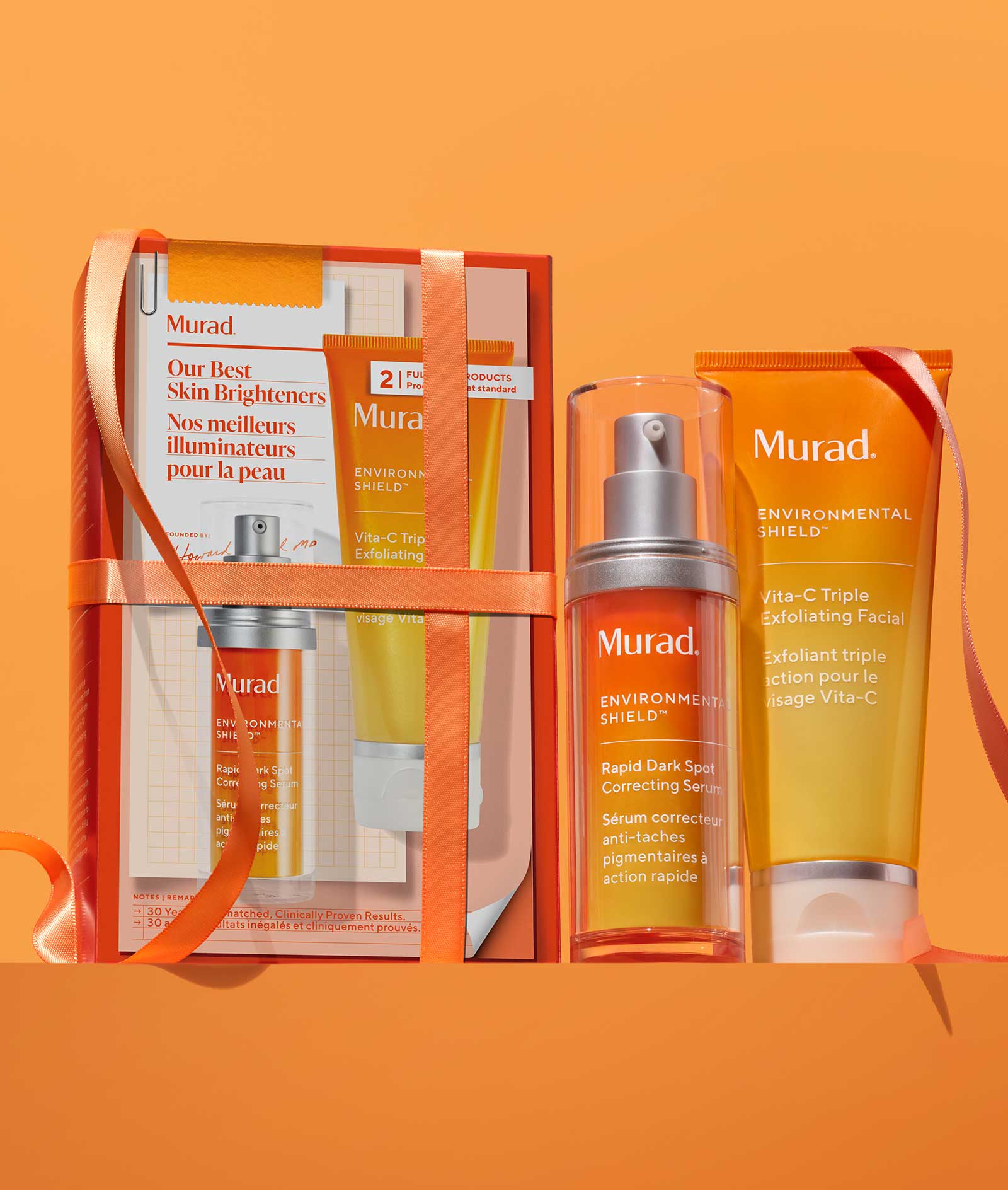 Murad's next generation of powerhouse brightening ingredients take on the look of the most stubborn dark spots, while treating your skin with the same care that a dermatologist would. Patented Resorcinol Technology in our dark spot treatment helps prevent the look of sun spots and discoloration for more even skin tone in the future. And our exfoliating facial with super-stable vitamin C is clinically proven to smooth texture as effectively as a microdermabrasion facial—in just 1 use