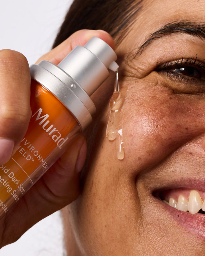 Dr Murad’s next generation of powerhouse brightening ingredients tackles even the most stubborn dark spots while treating your skin with the same care a dermatologist would. This transformative, daily-use dark spot treatment serum goes beyond correction, featuring antioxidant-rich, patented Resorcinol Technology that helps prevent the appearance of sun spots and discoloration for a more even skin tone over time. Skin-brightening ingredients like glycolic acid — one of the first and most sought-after exfoliants in Dr Murad’s dermatology practice — remove dull surface skin cells to quickly enhance natural radiance, boost ingredient penetration, and improve overall performance for better results. Hexapeptide-2 visibly smooths wrinkles and supports the look of collagen-rich skin